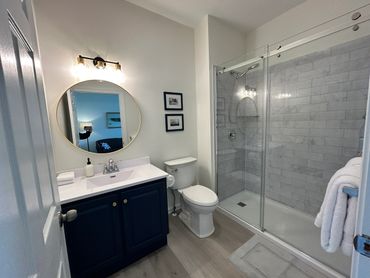 Inside, you will find a cozy queen bed, a double pull out sofa for extra guests, and a private three piece bathroom.