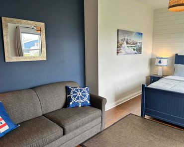 Settle into a comfortable queen bed, with a double pull out sofa available for extra guests, and enjoy the convenience of your own private three piece bathroom. It’s the perfect home base for unwinding after a day of exploring the coastline.
